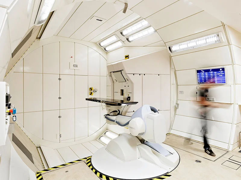 Münchenben a Rinecker Proton Terápiás Központban (RPTC) évente 4000 beteget tudnak fogadni kórházi körülmények között. Érdekességként meg kell említeni, hogy a négy egyenként 150 tonnás súlyú kezelő kapu egy percen belül 360 fokkal elfordítható.